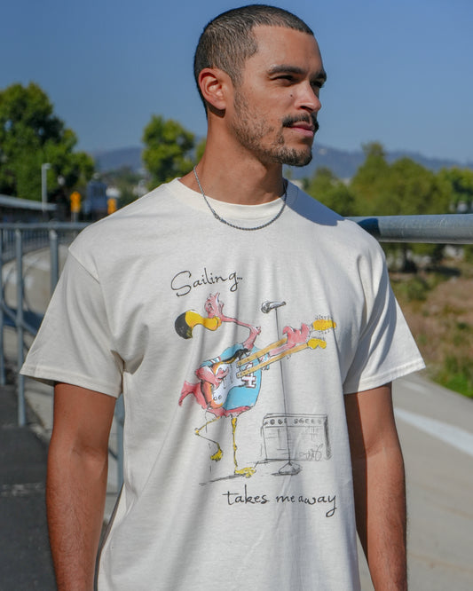 Sailing Takes Me Away - Retro Flamingo Yacht Rock Tee